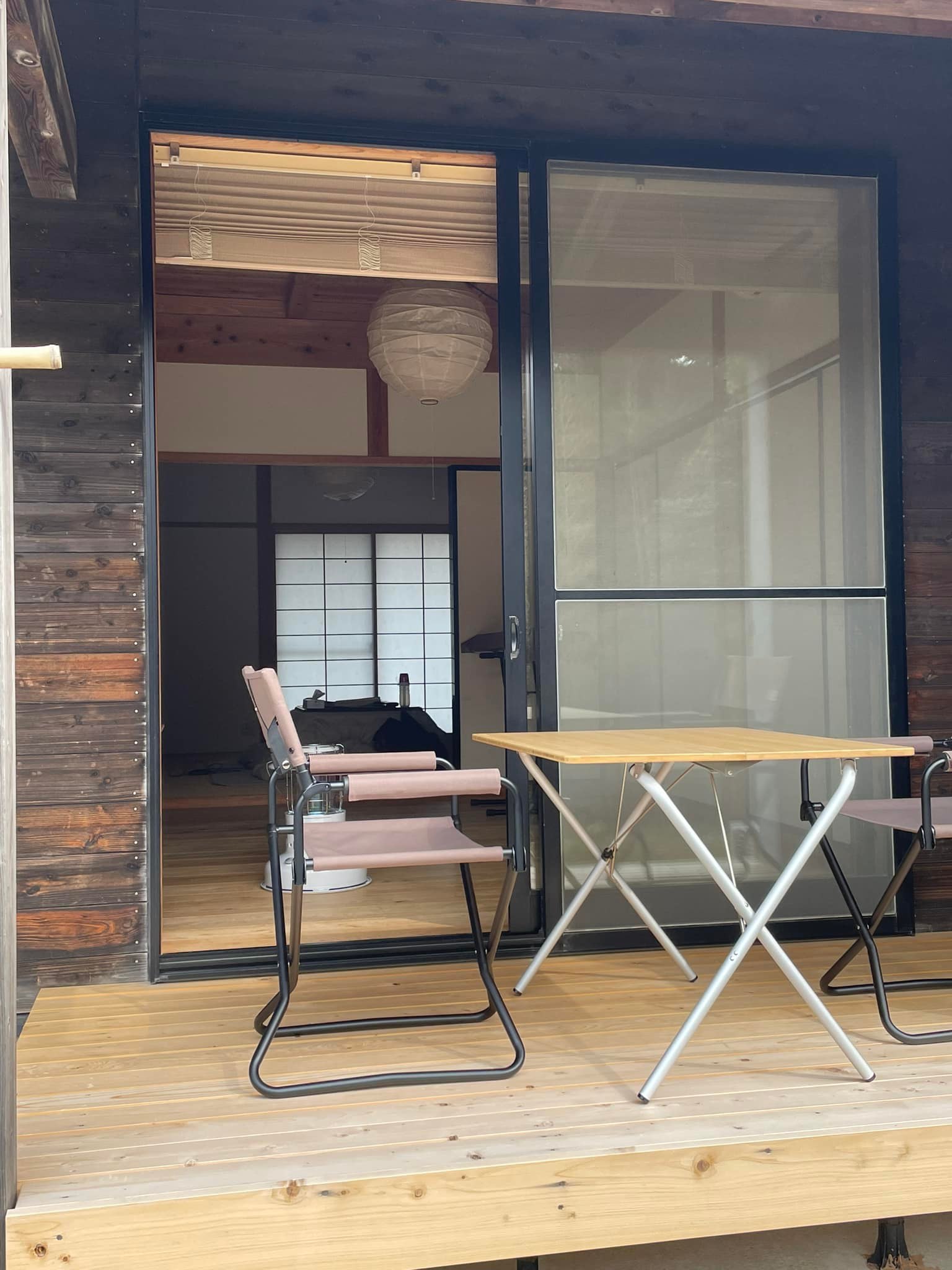 広々としたウッドデッキには屋根付きのテラス席があり、ガーデンパーティや目の前に広がる緑の絨毯や青空に白い雲など、開放感にあふれる空間を楽しんでいただけるよう造られています。またウッドデッキの側には焚き火を楽しんでいただけるよう、焚き火台も準備しています。