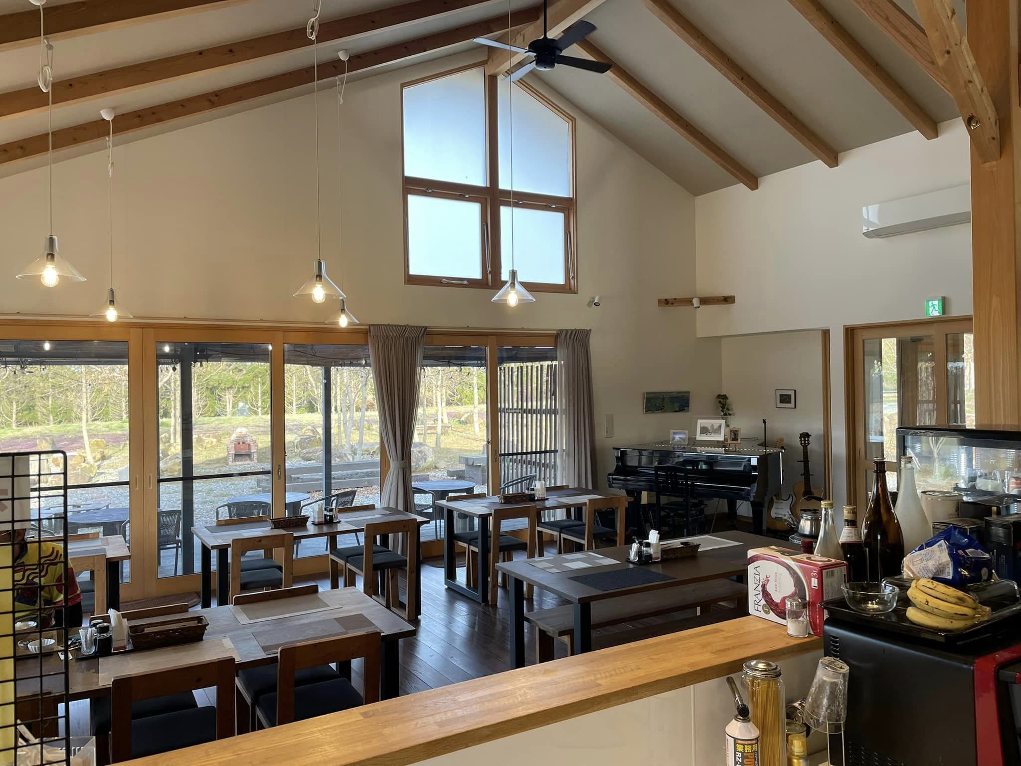 高い天井がコテージを感じさせます。広々とした室内は他に例を見ないくつろぎ空間となっています。